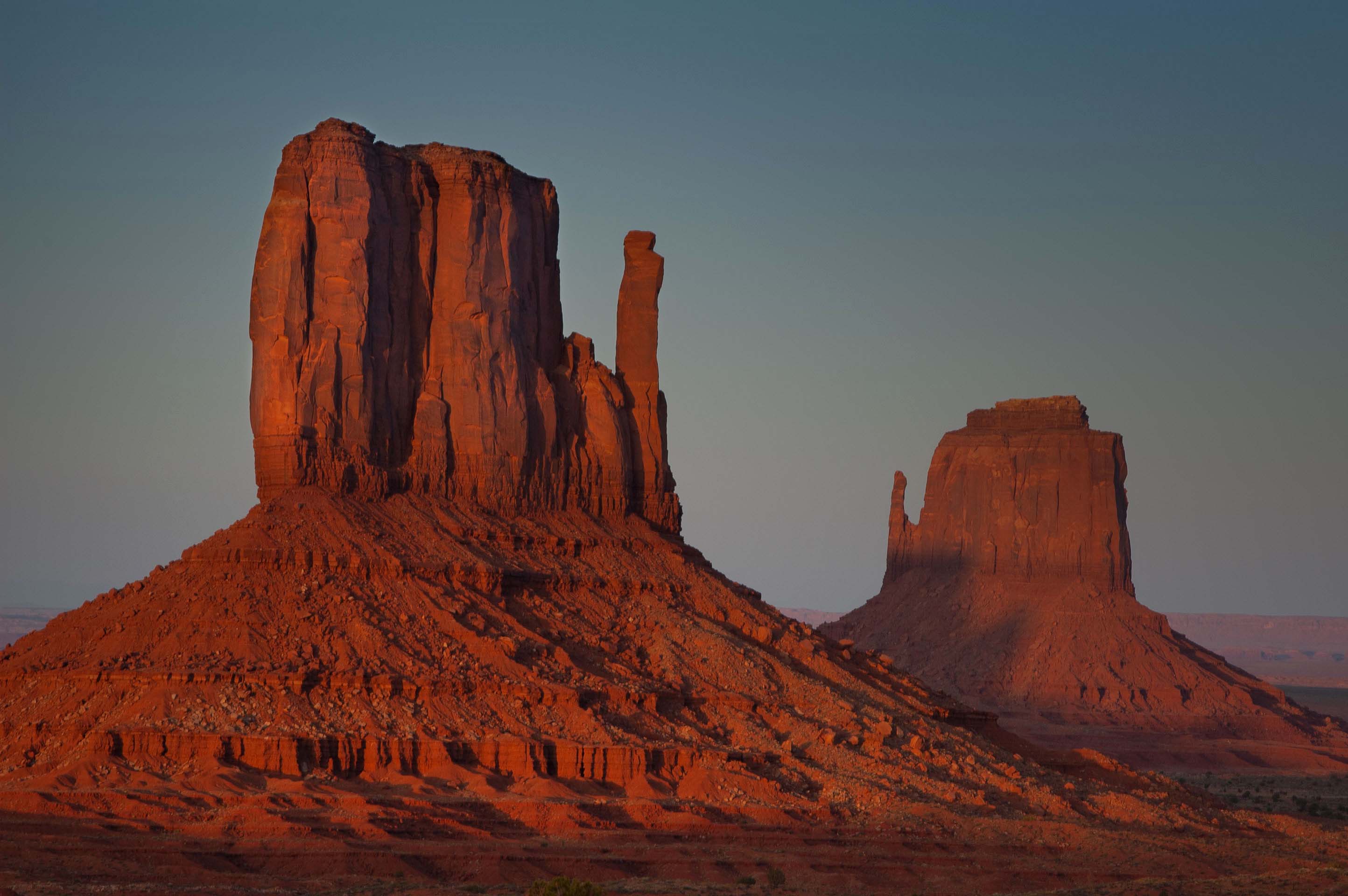 Sunset at East and West Mitten Buttes in Monument Valley on the Navajo Nation in northern ArizonaBack to Gallery Photo ID: AP6 Buy Photo