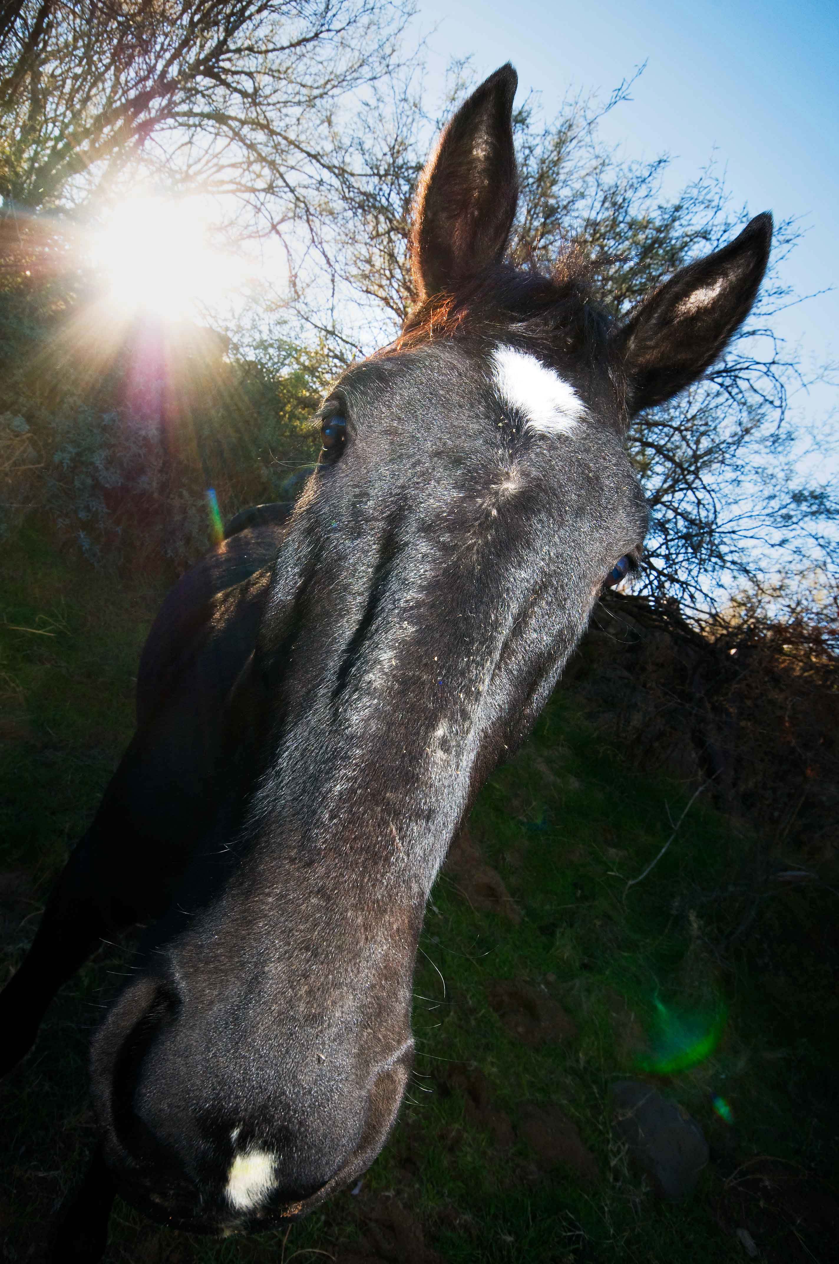 A horse in Ash Creek watches closely as I eat a Butterfinger BarBack to Gallery Photo ID: AC6