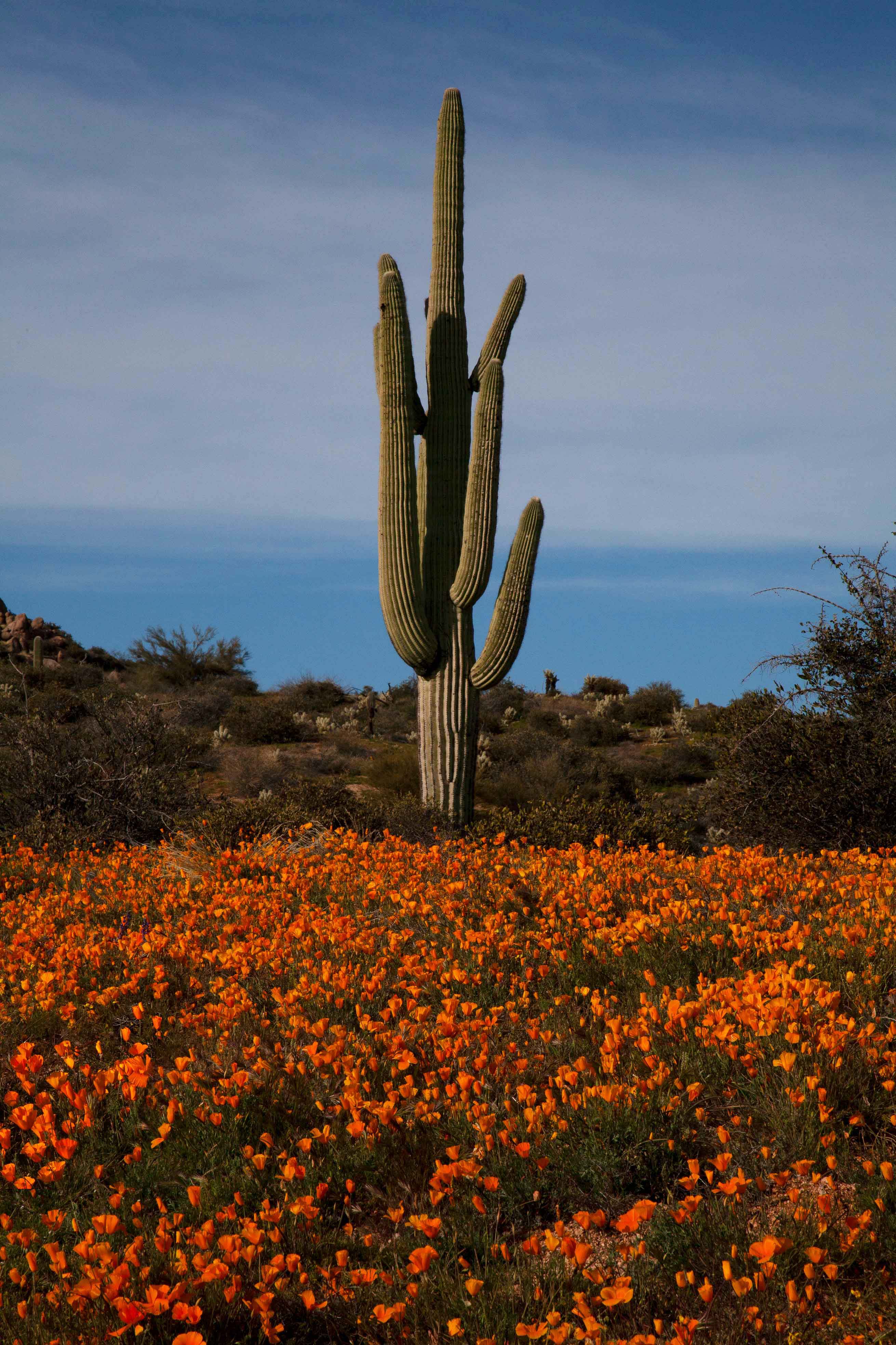 A saguaro surrounded by Mexican Goldpoppies near Bartlett Lake, ArizonaBack to Gallery Photo ID: BL11 Buy Photo