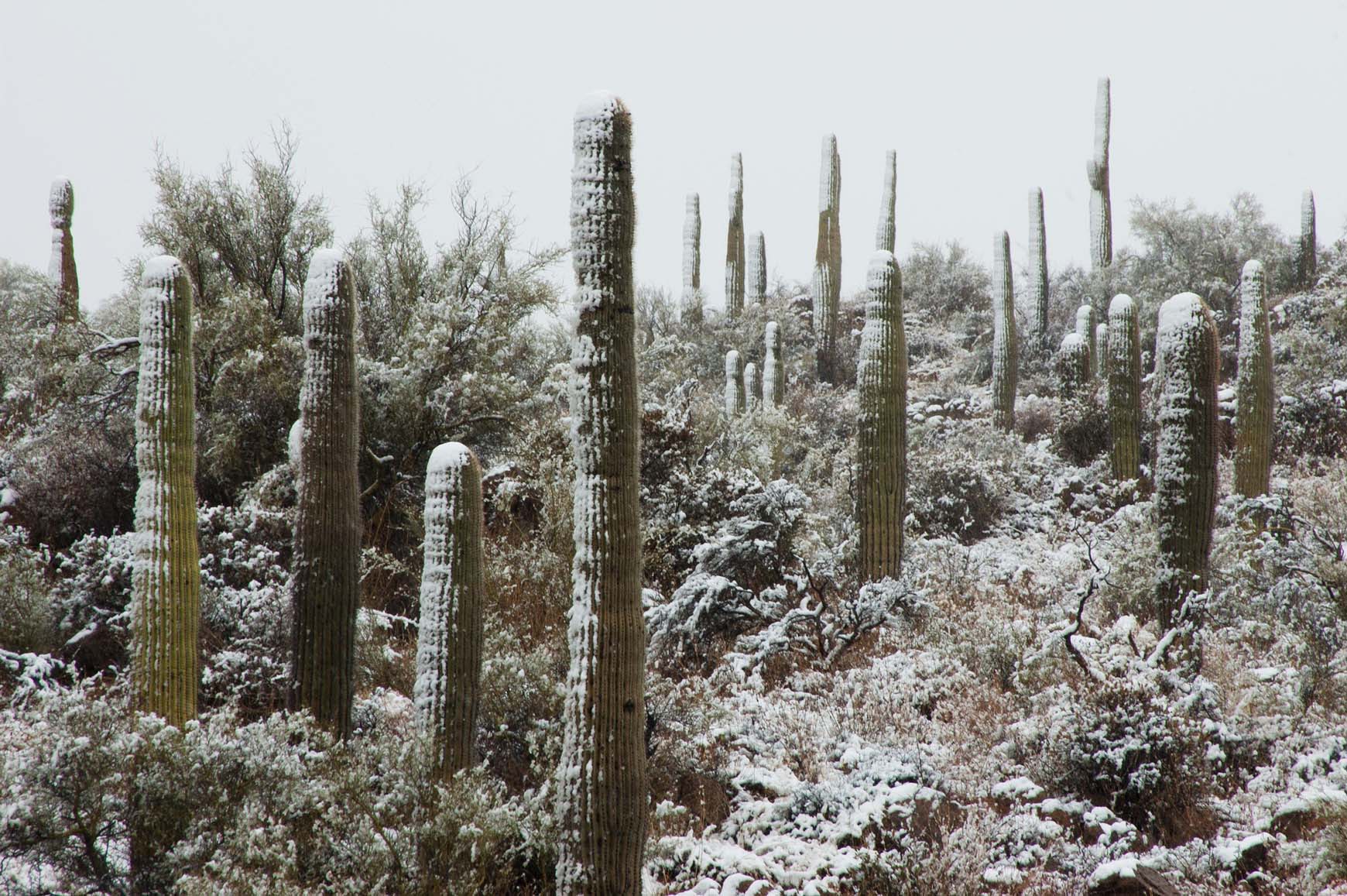 Snow-covered saguaro cactus in the Bradshaw Mts., ArizonaBack to Gallery Photo ID: BS2 Buy Photo