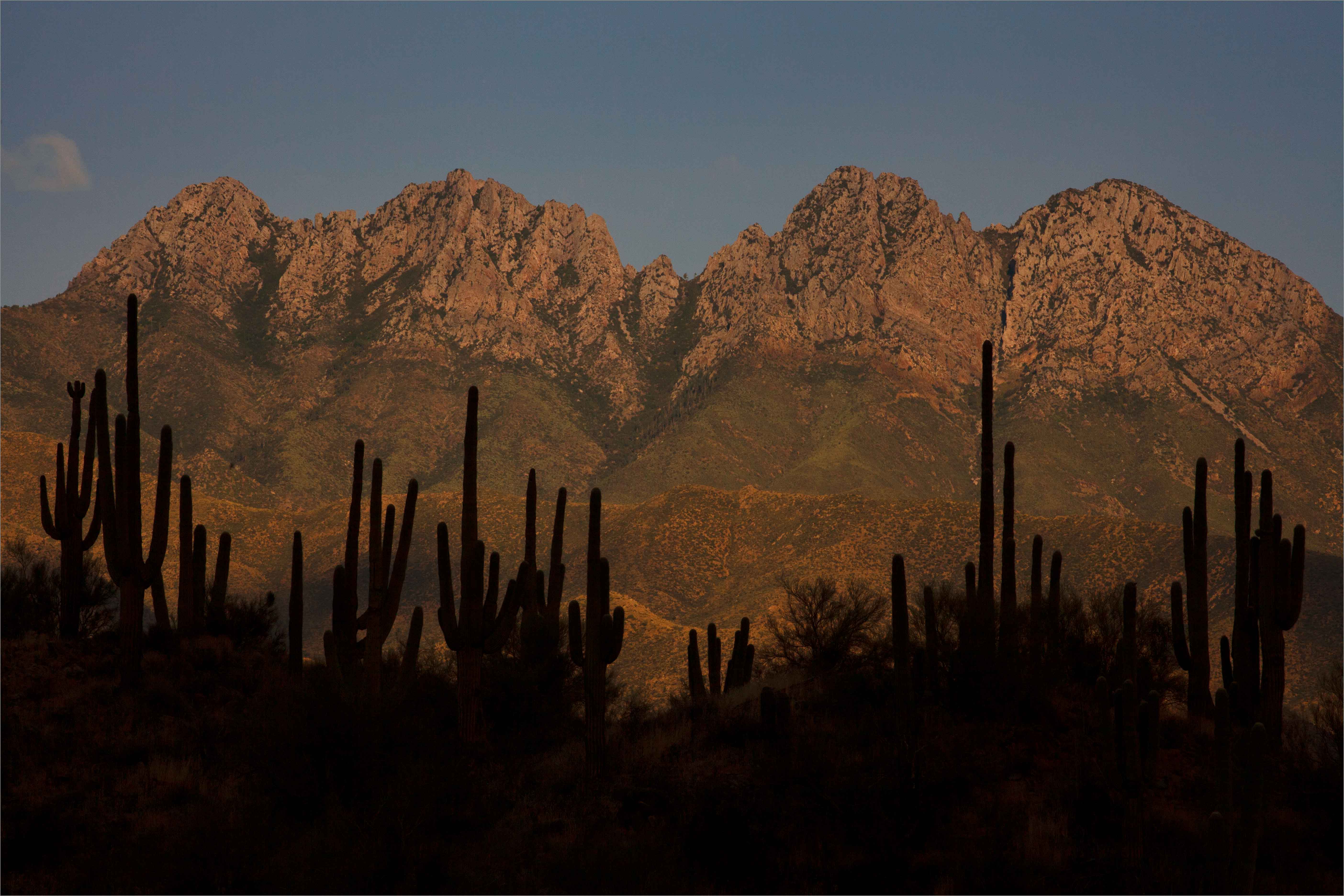 Saguaro cactus beneath Four Peaks in the Mazatzal Mts., ArizonaBack to Gallery Photo ID: FP12 Buy Photo