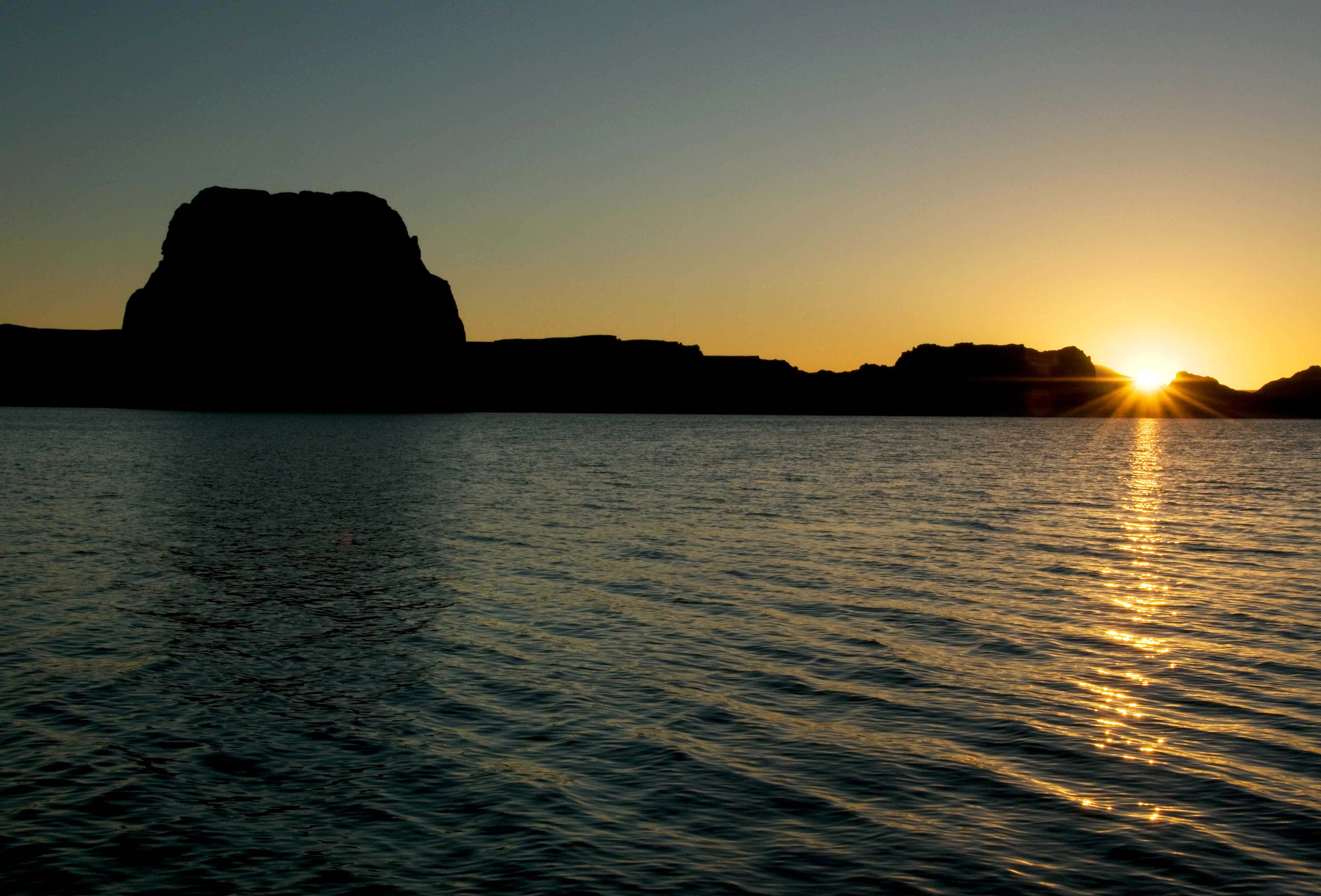 Sunrise at Waheap Bay, Lake Powell. At left is Lone Rock.Back to Gallery Photo ID: LP20 Buy Photo