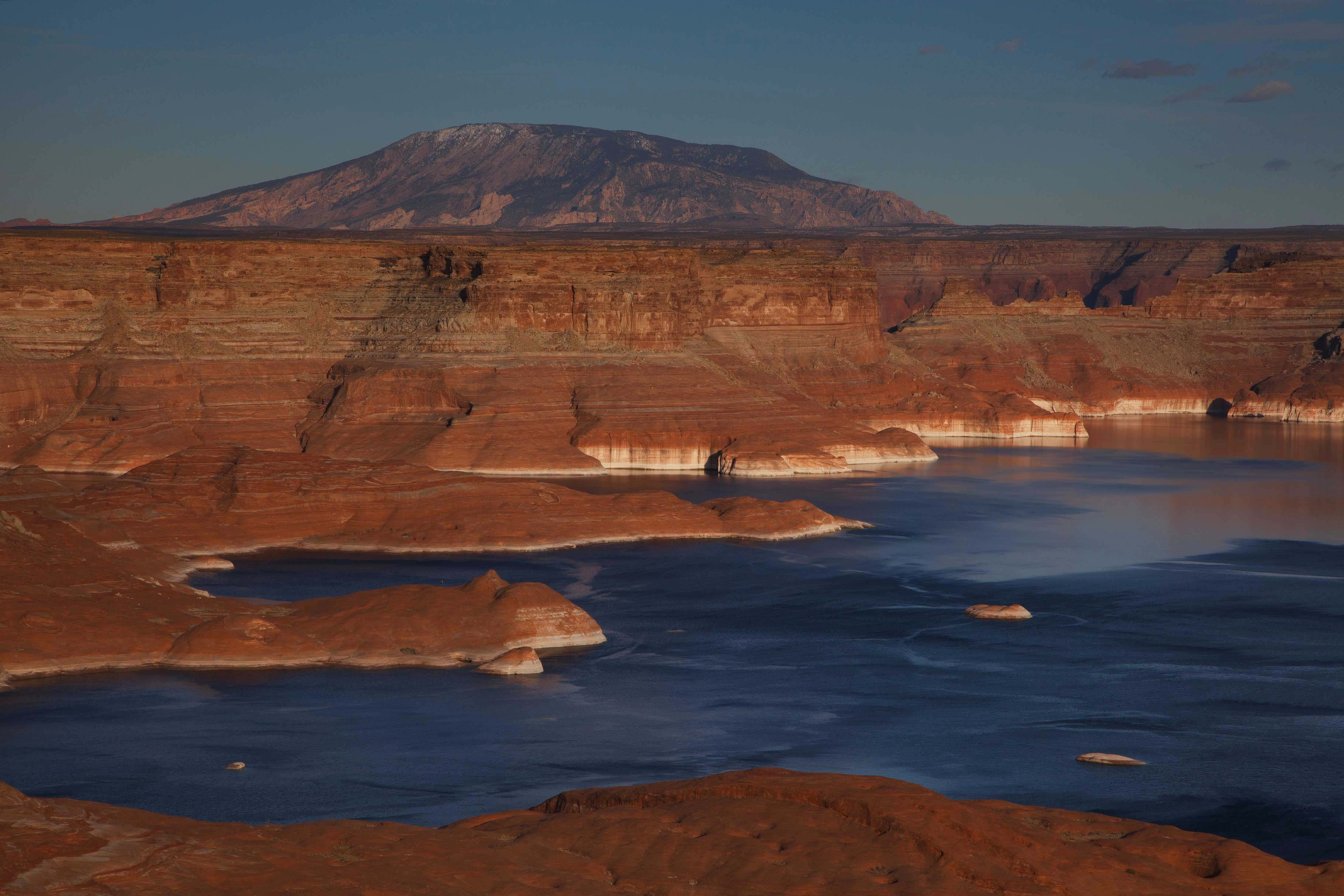 From Gooseneck Point on the Utah side of Lake Powell looking east across Last Chance Bay toward Navajo Mt.Back to Gallery Photo ID: LP5 Buy Photo
