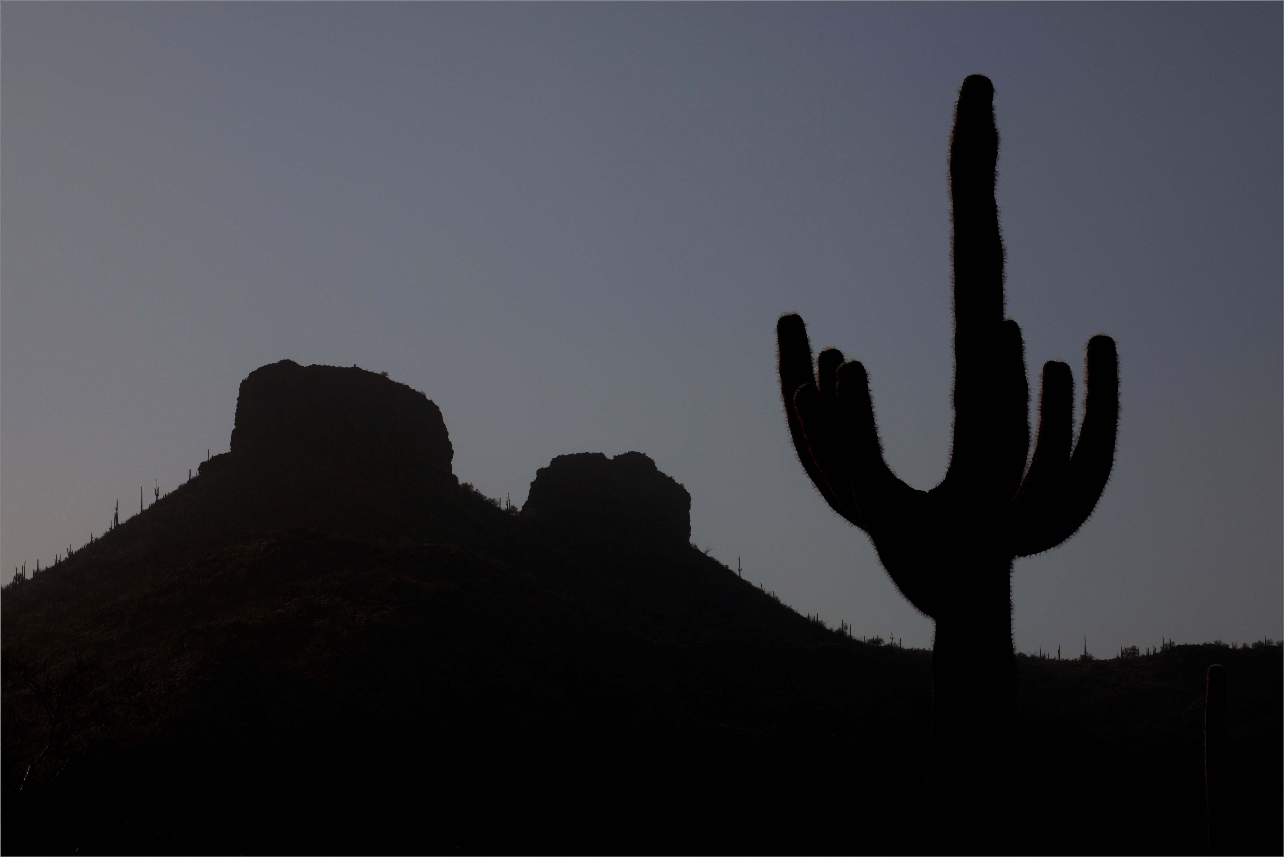 A saguaro beneath the Isanaklesh Peaks in the Sand Tank Mts., Arizona in the late afternoonBack to Gallery Photo ID: MCM11 Buy Photo