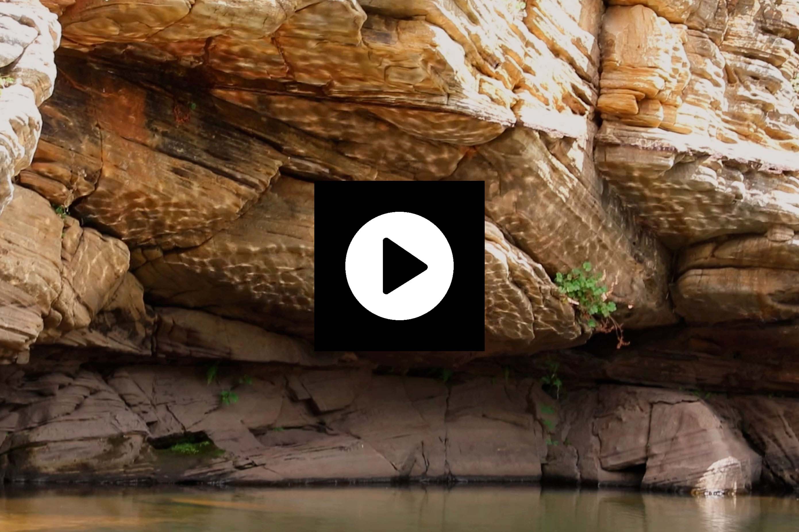 10-SECOND VIDEO: At Kinder Crossing, with sunlight refracting off East Clear Creek and onto overhanging rocks.Back to Gallery