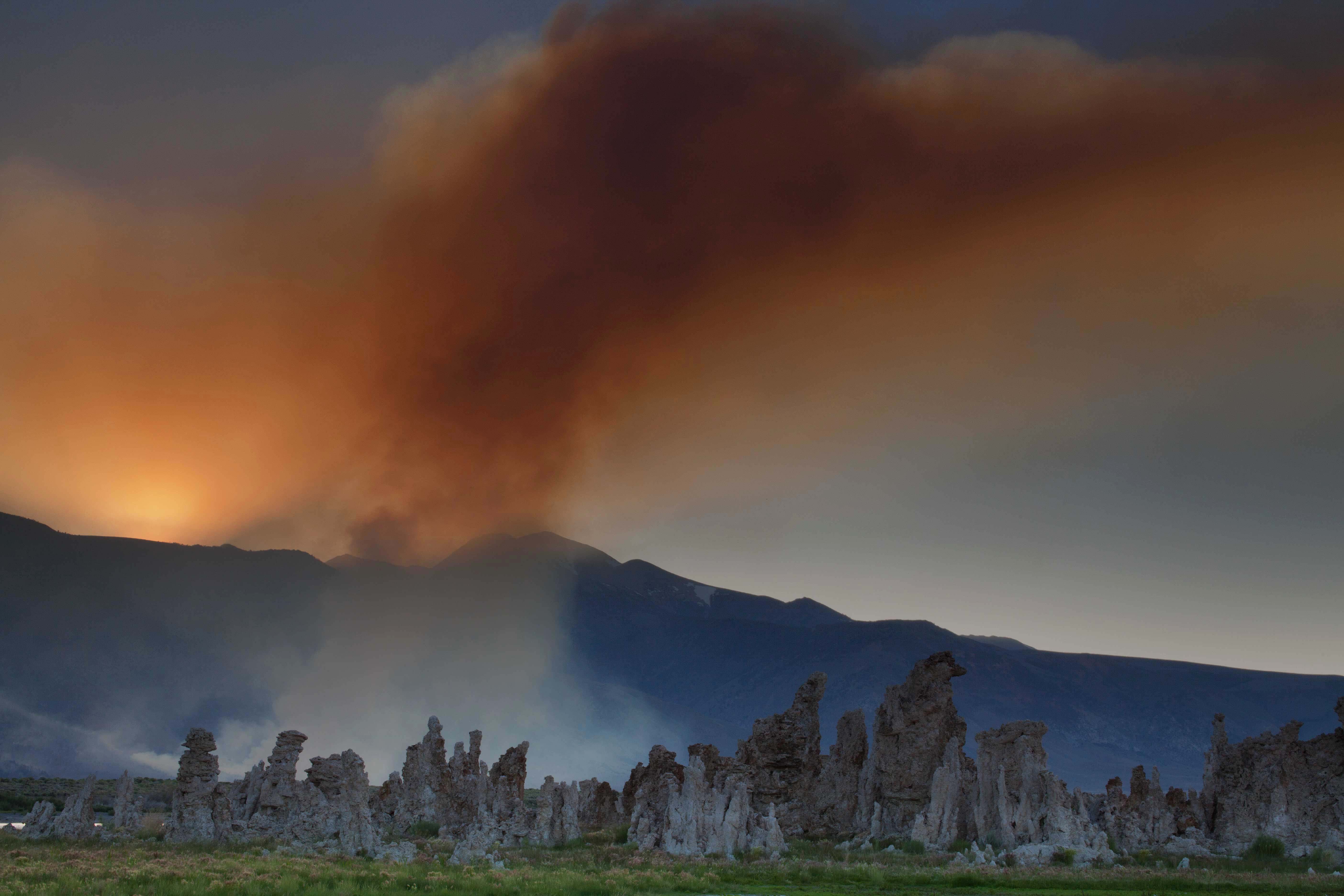 Smoke from a forest fire looms over Tufa Towers at Mono Lake, CaliforniaBack to Gallery Photo ID: ML7 Buy Photo