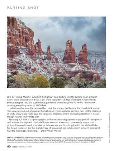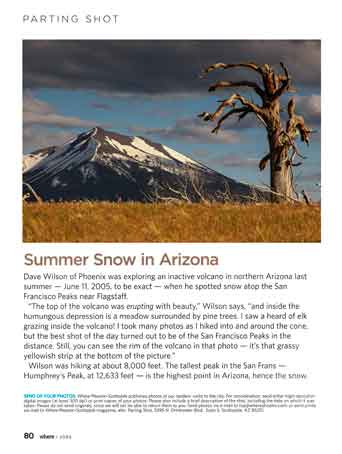 ![]() Ten photos in the October 2025 issue of Images Arizona magazine ![]() Seven-page photo essay on "Quirky Cacti" in the March 2020 issue of Images Arizona ![]() Several photos, including a two-page spread, in Arizona Images magazine ![]() Photo of West Clear Creek on the back cover of the University of Arizona Water Resources Research Center 2022 Annual Report ![]() Photo of the San Francisco Peaks on the cover of the 2023 Coconino County Emergency Operations Plan ![]() Green Valley News Sept. 4, 2010 |
