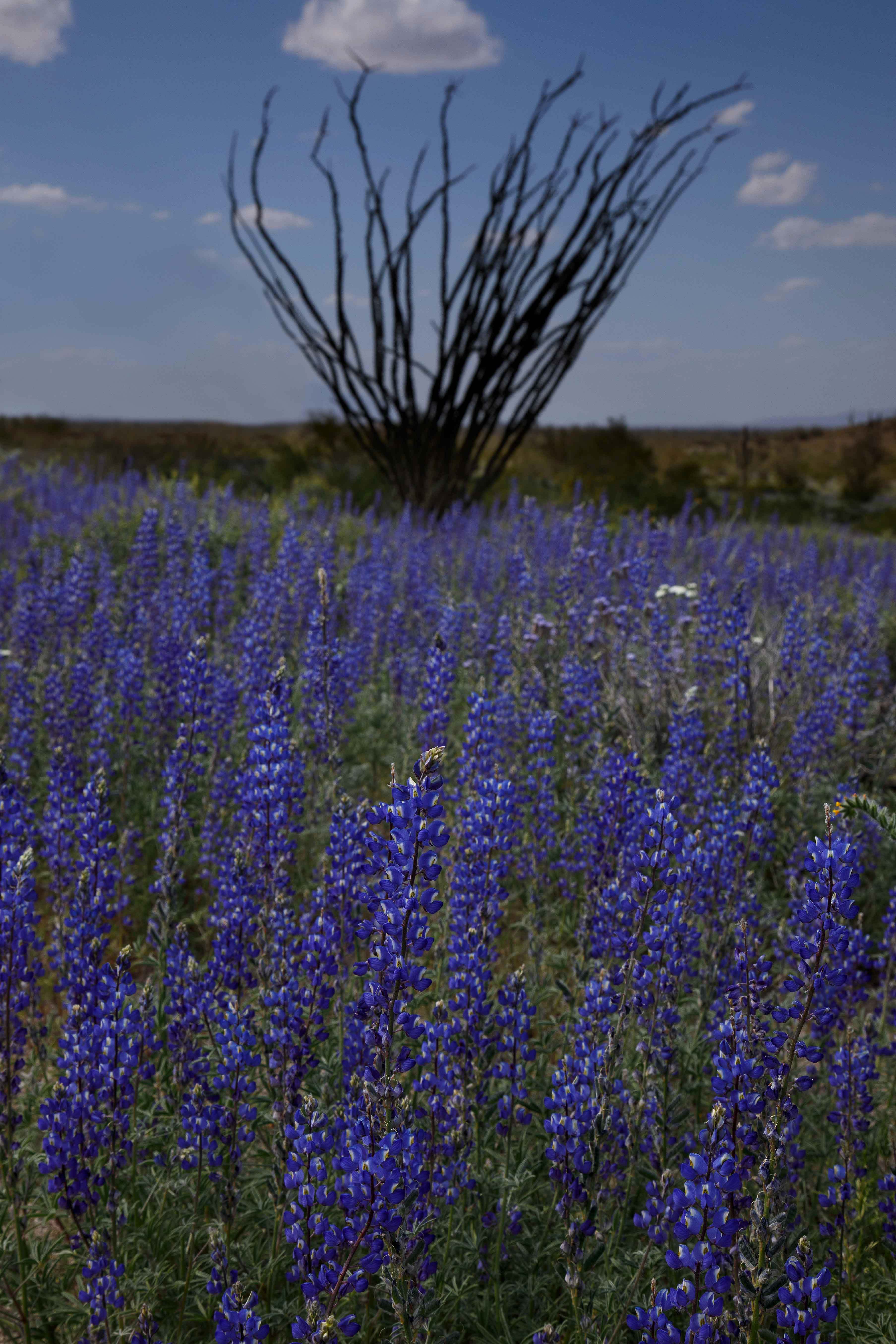 Lupins beneath an ocotillo in the Sacaton Mts. of southern ArizonaBack to Gallery Photo ID: SCT4 Buy Photo