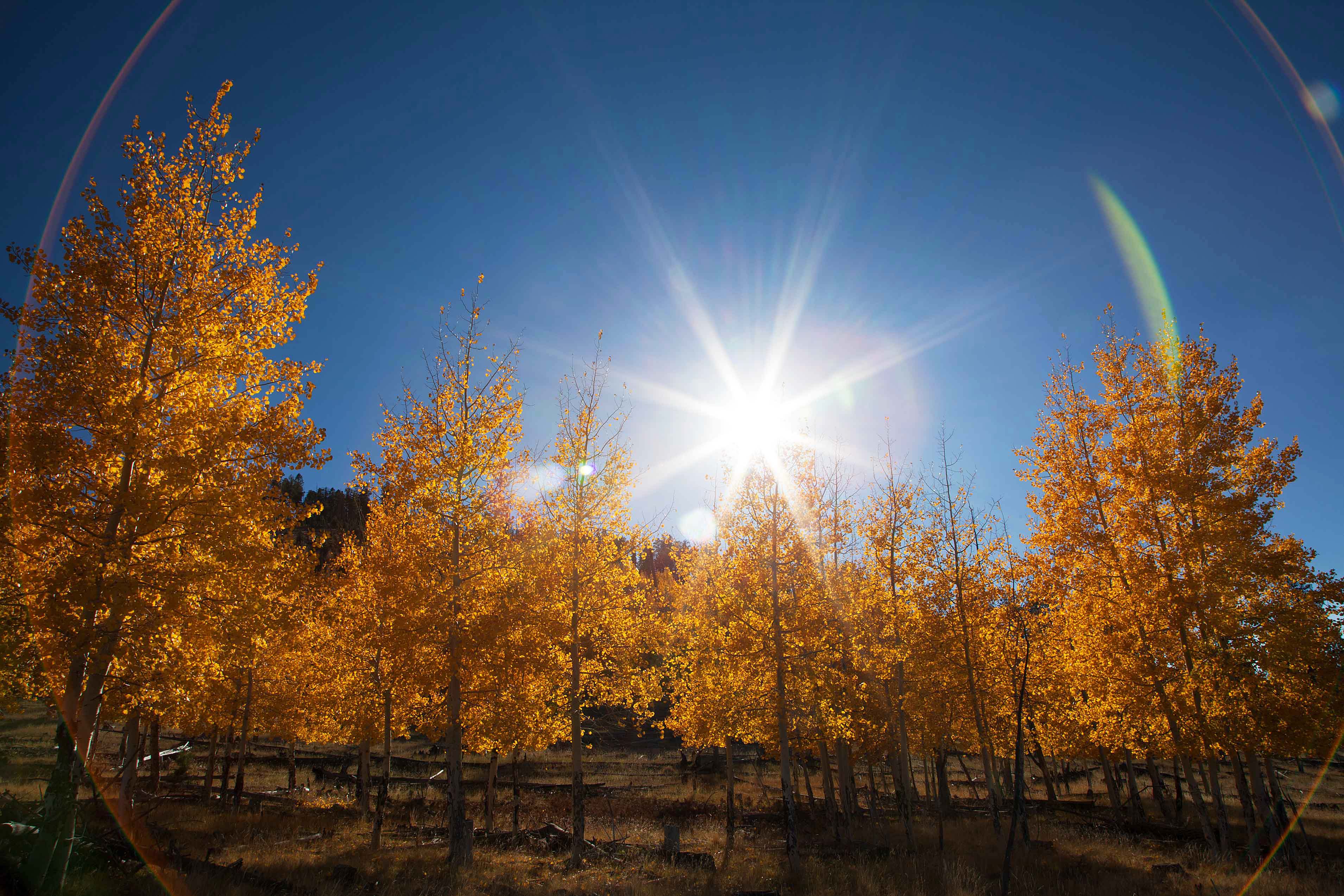Autumn aspens with circular lens flairs (glare) in the San Francisco Peaks of northern ArizonaBack to Gallery Photo ID: SP46 Buy Photo