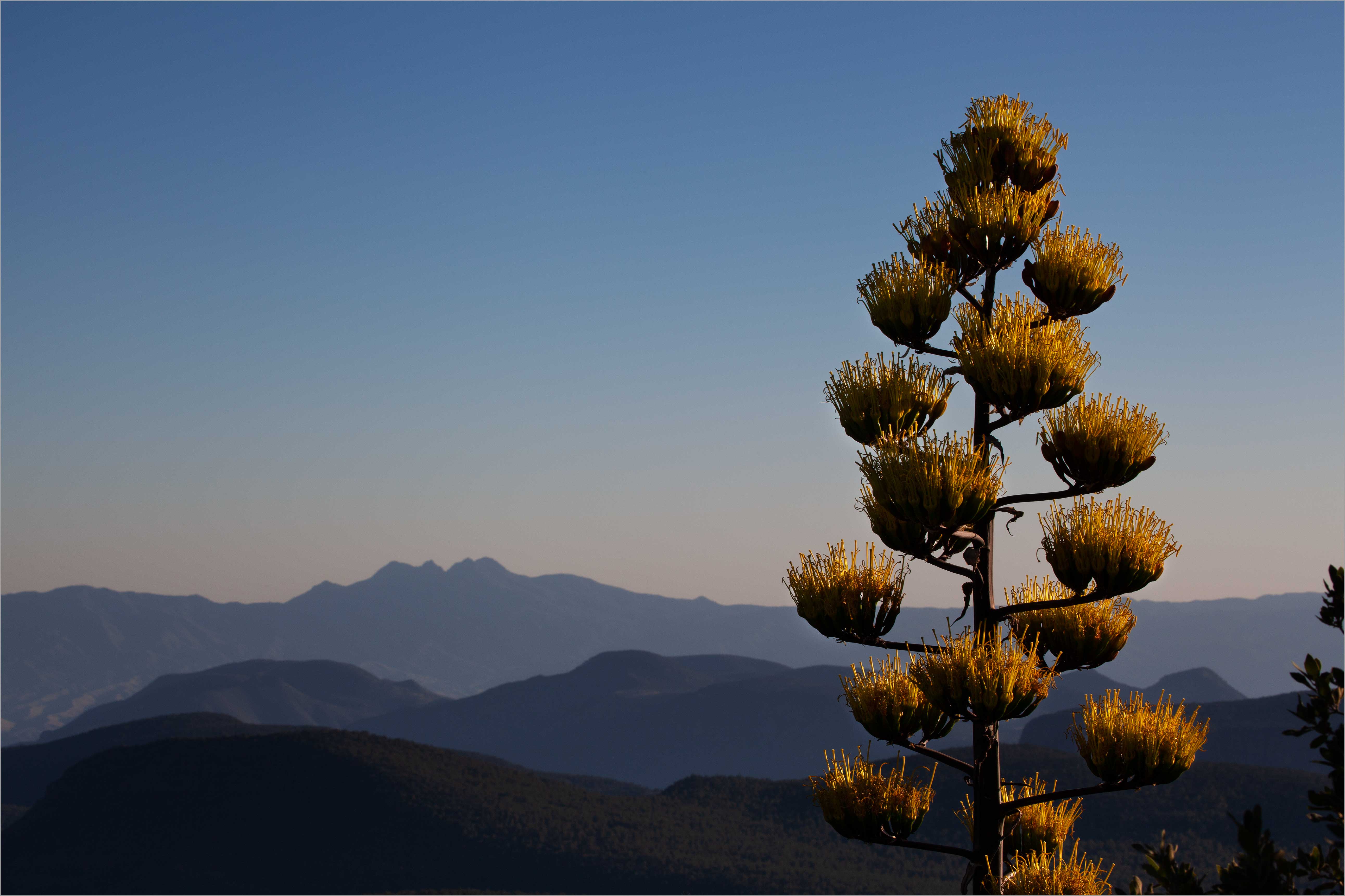 A century plant atop McFadden Peak in the Sierra Ancha, Arizona. In the distance are the Mazatzal Mts. including Four Peaks.