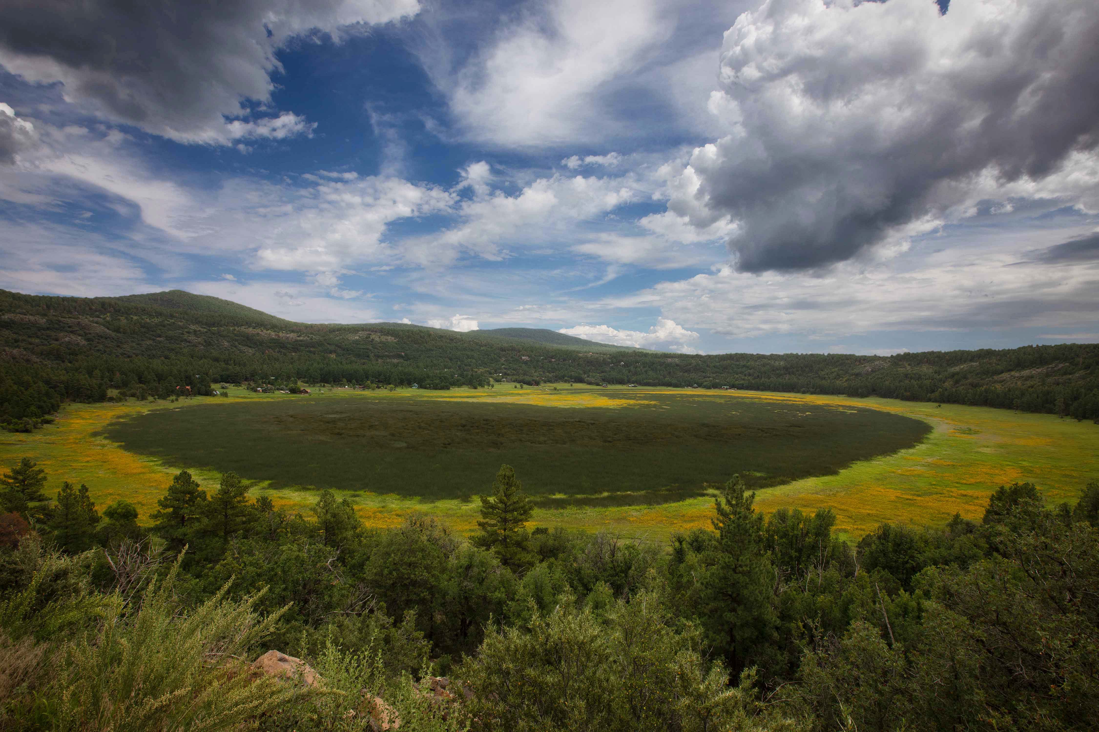 Stoneman Lake, Arizona (standard size). In summer 2021 the nearly-dry lake was ringed by green grass and wild sunflowers.Back to Gallery Photo ID: SL2 Buy Photo