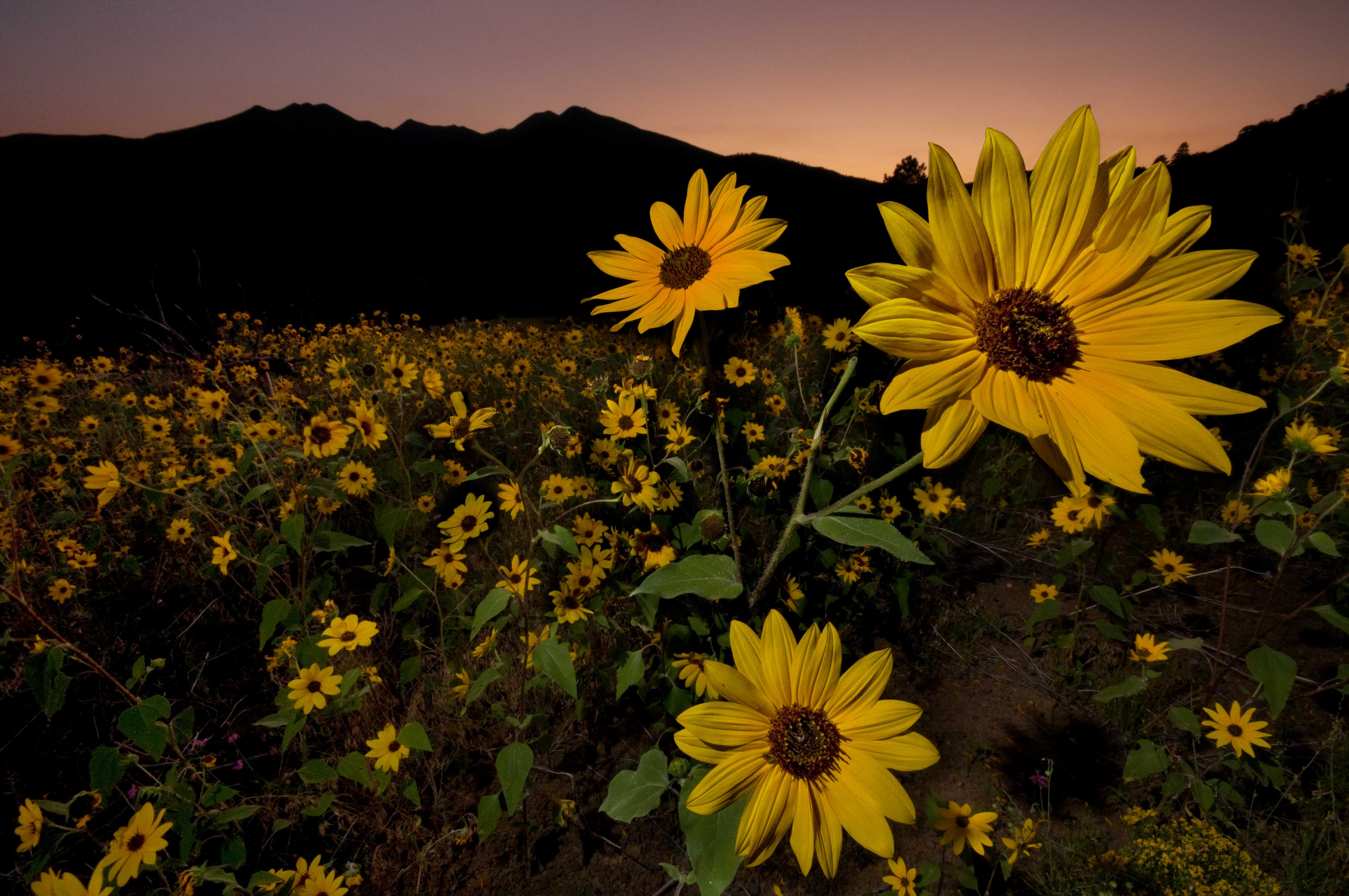 Wild sunflowers on Robinson Mt. on the Coconino National Forest, northern Arizona (flash at twilight)Back to Gallery Photo ID: WSF2 Buy Photo