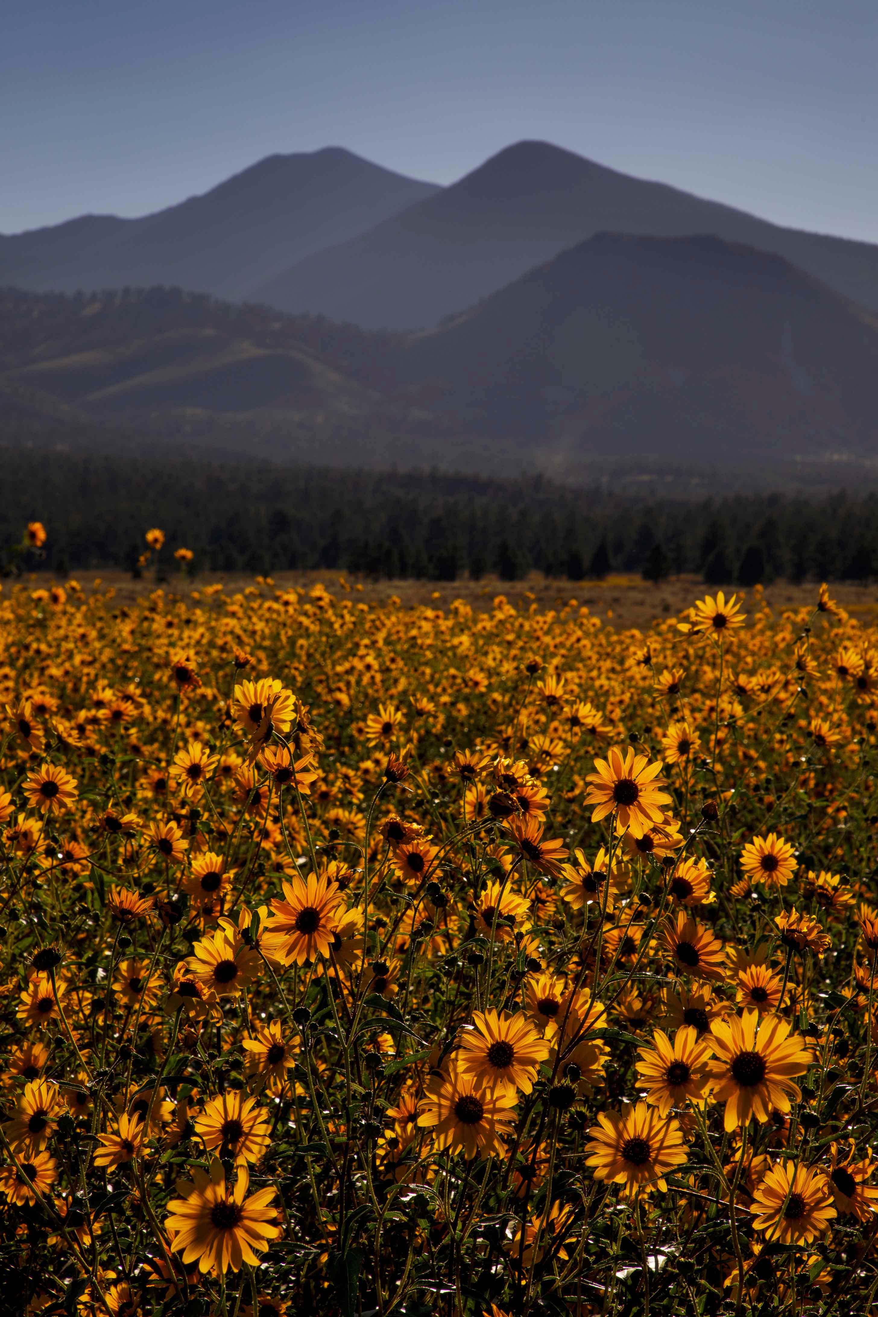 Wild sunflowers in Bonito Park with the San Francisco Peaks in the distance, northern ArizonaBack to Gallery Photo ID: WSF21 Buy Photo