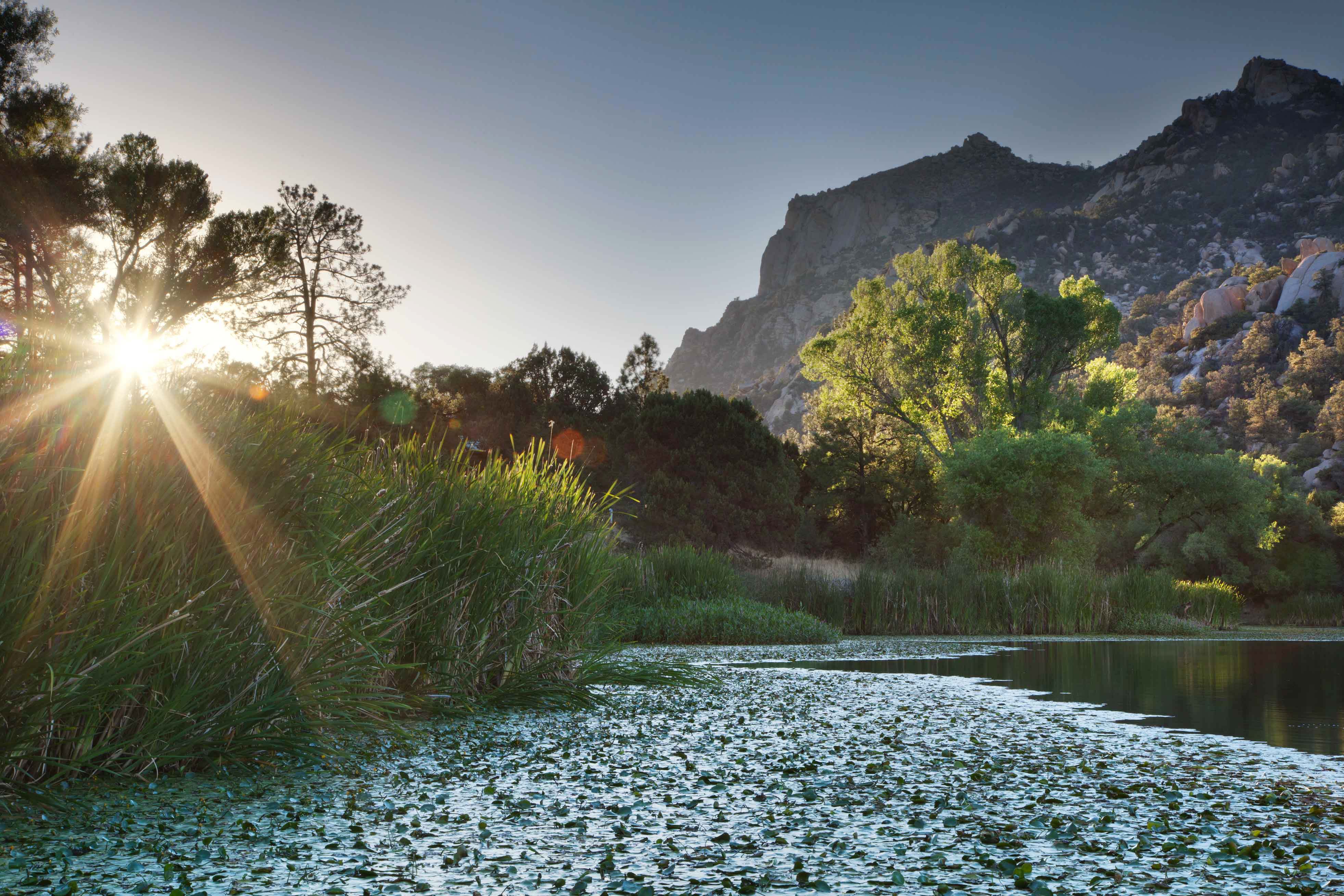 The sun sets at Granite Basin Lake, Arizona. In the background is Little Granite Mountain.Back to Gallery Photo ID: WLLO9 Buy Photo